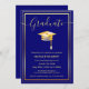 Navy Blue und Gold Moderne Graduate Cap Abschluss Einladung