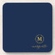Dieses personalisierte Untersetzer Set ist einfach, raffiniert und elegant. Es verfügt über einen marineblauen Hintergrund mit einem goldenen Monogramm und Skripttypografie für Ihre Personalisierung. Farben können auf Ihre Wahl zugeschnitten werden