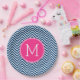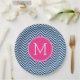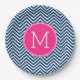 Navy Blue und Magenta Chevrons Custom Monogram Pappteller
