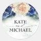 Navy Blue und Orange Blume Elegante Moderne Runder Aufkleber