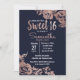 Navy Blue und Rose Gold Floral Sweet 16 Einladung