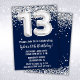 Navy Blau Silber und Weiß 13. Geburtstag Einladung 13 Geburtstagsfeier Einladung für ein Schwarz-weißes Silber mit modernem Drehbuch und lustigen Folienballons.