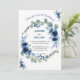 Das Design besticht durch einen eleganten Blumenkranz in Aquarelltönen, der mit Pfannkuchen, Rose, Eukalyptusgrün und mehr in Marineblau- und Grüntönen dekoriert ist