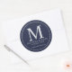 Navy Blue und Silver Elegante Monogram Business Runder Aufkleber