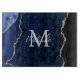 Dieses Schnittboard zeichnet sich durch einen eleganten und glamourösen Marmorhintergrund aus, der mit geode gemsteinten Details und Imitaten silbernen Glitzer Akzenten ausgestattet ist. Das Monogramm kombiniert handgeschriebene Skripte mit modernen serifenlosen Schriftart für ein elegantes und raffiniertes Aussehen. Dies wird das ideale Geschenk, da es mit einem Namen und Initial angepasst werden kann. Die tiefen blauen Farbtöne machen es perfekt für Herbst und Winter.