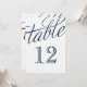Einfache und elegante Tischnummer-Karten mit Kalligraphie-Stil-Skript-Schriftart. Passen Sie jede Karte mit Ihren Tischnummern an, um Anzug jeder Größe Hochzeit oder Party. Klicken Sie auf Anpassen, um den Schriftart und die Farbe der Zahl zu ändern oder die Hintergrundfarbe zu ändern, um ein eigenes, einzigartiges Design zu erstellen.