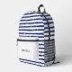 Navy Blue und White Marine Stipes Modernes Monogra Bedruckter Rucksack