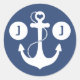 Navy blauer Monogramm Aufkleber mit Herzenanker.