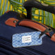 Dieses hübsche und moderne monogramm Gepäckanhänger hat ein elegantes Indigo, marineblau und weiß Aquarellmuster und den Anfangs- und Namen Ihrer Wahl.