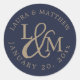 Hochzeit Funktion Ihre Initialen arbeitete in einem Monogramm-Design, verbunden mit einem dekorativen Skript-Ampersand. Ihre Namen und Ihr Hochzeitstermin erscheinen in weißer Schrift, rund um die Außenseite gebogen.