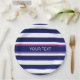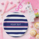 Navy Blue Whisky Stripe Hot Pink Name Monogram Pappteller