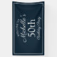 Navy blau-weiß 50. Geburtstagsbanner für eine Frauenfeier. Text ist ein eleganter Kalligraphieskript-Schriftart. Kontaktieren Sie uns für Hilfe bei der Anpassung oder um passende Produkte anzufordern.