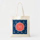 Navy Blue White Anchors Pattern Coral Monogram Tragetasche