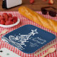 Navy Blue und White Christmas Tree für ein Weihnachts-Party-Dinner Teller mit einem niedlichen whimsical Spaß Party Papier Teller für eine festliche Feier.