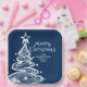 Navy Blue White Christmas Tree Party Pappteller