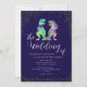 navy Blue and White Elegant Dinosaur Wedding Invitation Fun Modern Colorful T-Rex Bride and Groom Design
