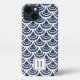 Navy Blue & White Fishscale Muster Monogram iPhone Hülle
