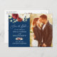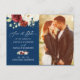 Navy Blue White Floral Foto Save the Date Postkarte