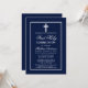 Elegante Navy Blauer Erste Heilige Kommunion Einladung mit Kreuz. Weiße Rahmen.