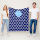 Navy Blue White Marokko #5 Sky Blue Name Monogram Fleecedecke