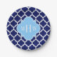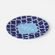 Navy Blue White Marokko #5 Sky Blue Name Monogram Pappteller