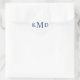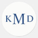 Klassische und elegante marineblau-weiße Monogramm Hochzeitsaufkleber. Bride, Groom und Nachname Initialen. Die Hintergrundfarbe kann geändert werden, um den Anzug Ihres Farbschemas zu erhalten. Ideal für Tischdekoration, Umschläge, Gefälligkeiten, vielen Dank ...Kontakt Designer für weitere Variationen.