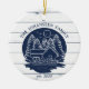 Fügen Sie Ihrem Weihnachtsbaum eine Touch nautischen Charmes hinzu mit unserem Navy Blue & White Rustic Wood Nautical Lake House Keramik Ornament! Mit einem reizvollen Logo des Seehauses in eleganten marineblauen Tönen, inklusive Kiefern, Kanu-Paddeln, einem ruhigen Wasserteich, Ankern und einer gemütlichen Hausdarstellung auf weißem rustikalem Holzboden, bringt dieses Ornament den Geist des Sees in Ihre Urlaubsstimmung. Personalisieren Sie das gekrümmte Layout auf dem Logo mit Ihrem Familiennamen in der gleichen eleganten blauen Typografie. Fügen Sie unter dem Logo Ihren eigenen Text hinzu, z.B. das etablierte Jahr, der Name des Sees oder die Hausadresse, was es zu einem wirklich einzigartigen Sake macht. Ideal für die bevorstehende Weihnachtsfeier, fügt dieses Ornament Ihrem Baum eine Touch rustikalen Charmes hinzu und feiert gleichzeitig die Erinnerungen, die im Seehaus gemacht wurden.