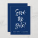 Navy Blue und White Hand Lettered Script Save the Date Card. Der Text dieses handgeschriebenen Pinselskripts kann mit Namen und Datum aktualisiert und angepasst werden.