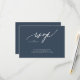 Moderne Navy Blue White Simple Wedding RSVP Response Card - für eine moderne Hochzeit formell oder informell. Navy Blau und Weiß mit beeindruckender moderner Kalligraphie. Extravagante schöne Kalligraphie. *QR CODE UAWG BACK