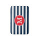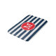 Navy Blue White Stripes Minimal Bold Red Monogram Badematte