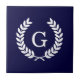 Navy Blue Wht Wheat Laurel Wreath Initial Monogram Fliese