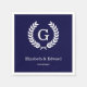 Navy Blue Wht Wheat Laurel Wreath Initial Monogram Serviette
