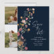 Navy Blue Wildblume Save the Date mit Foto Card. Diese stilvolle und elegante Hochzeitseinladung besticht durch herrliche, handbemalte Aquarellfarben-Wildblumen. Finden Sie passende Artikel in der Navy Blue Wildblumen Dreams Collection.