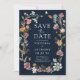 Navy Blue Wildblumen speichern die Datumskarten. Diese stilvolle und elegante Hochzeitseinladung besticht durch herrliche, handbemalte Aquarellfarben-Wildblumen. Finden Sie passende Artikel in der Navy Blue Wildblumen Dreams Collection.