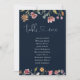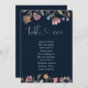 Navy Blue Wildblumen Tischnummer 1 Seating Chart. Dieses stilvolle und elegante Hochzeitssitzdiagramm zeichnet sich durch herrliche handbemalte Aquarellfarben-Wildblumen aus. Finden Sie passende Artikel in der Navy Blue Wildblume Dreams Collection.