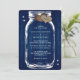 Navy Blue Wood Mason Jar Burlap Hearts Wedding Einladung