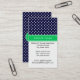 Navy Blue Wt Polka Dot Emerald Green Name Monogram Visitenkarte