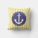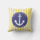 Navy Blue Yellow Stripe Boat Name Anchor Nautic Kissen