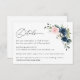 Vervollständigen Sie Ihre Hochzeitssaison mit dieser stilvollen Detailkarte. Das Design ist mit Marineblau- und Rosa-Blume und Grün auf weißem Hintergrund gestaltet.
