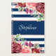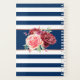 Dieser moderne Planer zeichnet sich durch ein modernes Blumendesign aus. Die Blume sind in Aquarellbord, Korallenrot und Blattwerk auf einem marineblau-blauen und Imitat-Rose mit goldgestreiftem Hintergrund. Die Rückseite hat ein passendes Blumenmotiv. Personalisieren Sie das Monogramm mit Ihrem Namen oder Ihren Initialen.