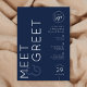 Create modern networking event invites for your business with this minimalist Meet & Greet Invitation design. This navy blue and white company invite is great to use for social company events, dinner & drinks events and more. Featuring stylish typography design and your custom logo, this business event marketing flyer allows you to edit all text and colors so you can tailor it to suit your brand and event aesthetic.