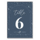 Ein himmlischer Mond mit Sternen und ein grauer Hochzeitstisch mit dem gleichen Design auf der Rückseite, um den Gästen zu helfen, ihren Tisch zu finden. Passen Sie die Farbe des Sternmusters, des Hintergrunds, des Bogenfüllens und des Mondelements an! Sie müssen bei Ihrer Hochzeit für jede Tischnummer einen kaufen.
