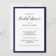 Diese eleganten Brautduschen mit elegantem, elegantem, blauen Text auf weißem Hintergrund, umgeben von der Marine.