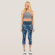 Navy Denim Tropical Blume Print Capri Yoga Pants