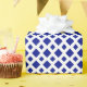 Ein gewagtes, geometrisches Muster großer und kleiner Marineschiffdiamanten auf weißem Hintergrund. Das Weiße bildet ein Gitter, das die dunkelblauen Diamantformen trennt.