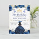 Navy Dress Black Hair Salon Princess Birthday Einladung