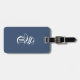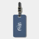 Navy blue Elegant Gothic Monogram Name Medieval Typo Luggage Tag featuring your personalized initials in ancient gothic medieval calligraphy script and custom name, celebration, wedding couple names or any custom text in distressed grunge and sophisticated serif font. Stylish black and white colors fully customizable.
