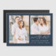 Announce your upcoming nuptials in Style with our Elegant Script foto save the magnet. The elegant save the date magnet feature 2 of your engagement fotos with "save the date" in white modern calligraphy script against a navy background. Personalize the simple save the date magnet by adding your names, wedding date and wedding least.