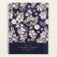 Elegante marineblaue, blumenblaue, goldfarbene Monogramm-Planer-Sonderausgabe mit kühlem botanischem Design in sanften Gold- und Lavendeltönen. Mit einem schicken Goldmonogramm und einem personalisierten Namen auf dem Cover ist dieser Spiralplaner ideal für Tagesplanung, Journalisierung oder Notenaufnahme. Ein zeitloses und stilvolles Schreibwerk, das ein wunderschönes Geschenk für Frauen und Mädchen macht, die moderne Blumenmuster Liebe.