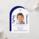 Weißer Hintergrund, mit goldenem Kreuz verziert. Persönlich dekoriert und mit einem Foto versehen. Navy Text. Bogenförmiger Rahmen aus Foto Zurück: eine marineblaue Farbe.